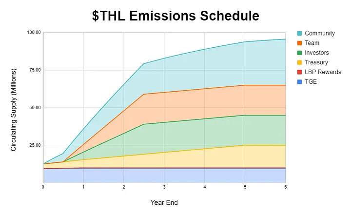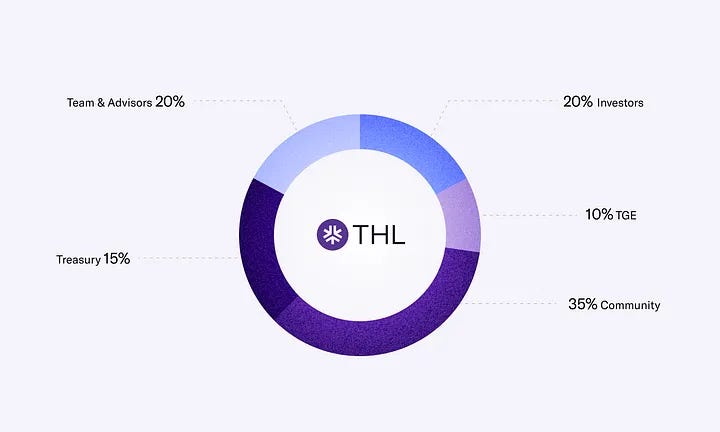 The total supply of $THL is 100,000,000 tokens distributed to the following groups: