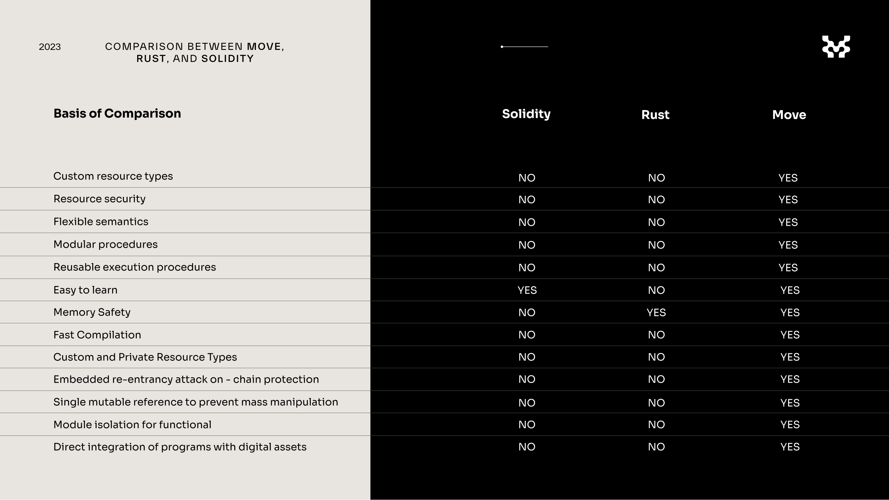 Verifiability: The Move language was designed to integrate off-chain static verification tooling, something.